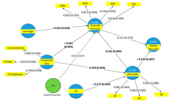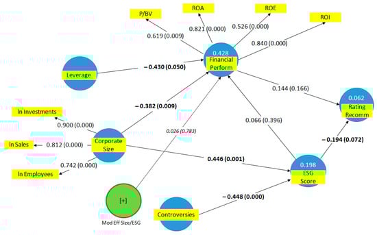 - SEM (Structural Equations Model) performed by Partial Least Squares Path Modeling on the specific ESG sub-sample (analysed with regard to the 2016–2017 period due to the new regulatory framework set out at a European scale and the spread of ESG metrics, which would entail enhanced firm performance and evaluations [88]), in order to implement the analysed sub-variables with suitable vector clusters (latent variables: CS, ESG, and FMP, extracted from statistical projections and grouped by OLS). It is worth underlining that the SEM-PLS is a procedure increasingly being adopted in business and social sciences [89,90].
