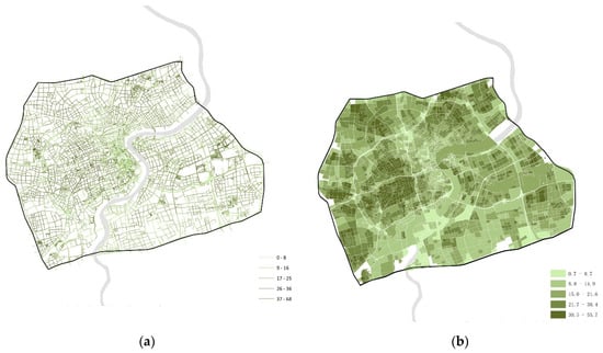 | Daily accessed street greenery | BTA_800 BTA_6200 Avg_Green Combined_assessment | Local street accessibility for pedestrians (sDNA 800 m) Global street accessibility for commuting behaviors. (sDNA 6200 m) Average human-scale street greenery calculated by the SegNet algorithm, based on the Baidu street view image dataset. Combined assessment of both greenery and accessibility ![]() |