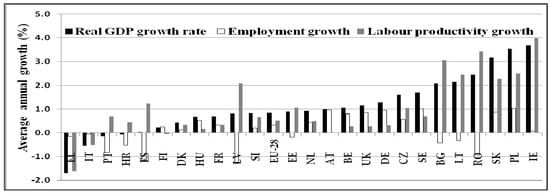 25], we consider that more attention needs to be paid to improve productive employment as a key precondition for achieving economic, social, and territorial cohesion at the EU level in order to reduce disparities between individual member states and to ensure a high level of inclusive and sustainable development in all countries of the EU.
