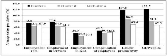 Figure 6). As regards the employment indicators, it is noted that this cluster has the highest level of employment rate (73.83%).