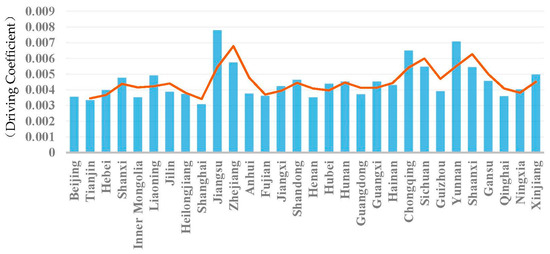To reflect the driving ability of the construction industry in 30 provinces, I employed the driving coefficient calculated in Section 2.2.2. The driving coefficients of the construction industry in 30 provinces are shown in Figure 4.
