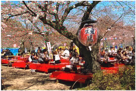 10. Ohnuki-Tierney, E. Cherry blossoms and their viewing: A window onto Japanese culture. In The Culture of Japan As Seen Through Its Leisure; Linhart, S., Frühstück, S., Eds.; SUNY Press: Albany, NY, USA, 1998; pp. 213–236. [Google Scholar]