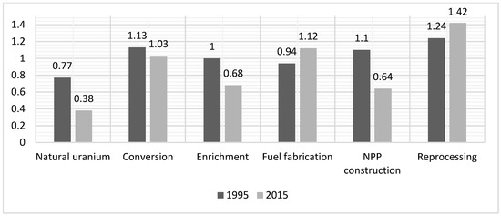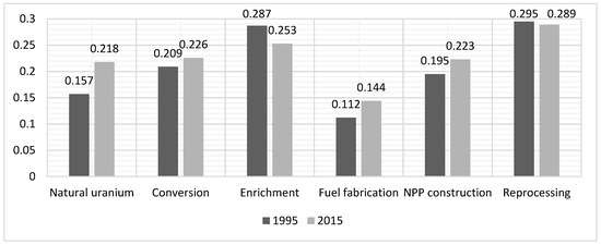Figure 1. Accordingly, the market has become more concentrated in almost all sectors, except for enrichment and reprocessing, which remain highly concentrated despite having lower