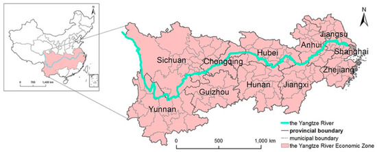 Straddling the three major regions of eastern, central, and western China, the YREZ is comprised of two municipalities and nine provinces (Figure 2), and primarily contains three urban agglomerations (the Yangtze River Delta Urban Agglomerations, the Triangle of Central China, and the Chengdu-Chongqing City Group). This paper focuses on 126 prefectural and above-level cities in the YREZ. In 2015, the population of the YREZ accounted for 42.9% of the national population. As a significant economic development zone, the YREZ produced 42.2% of the national gross domestic product (GDP) in 2015. The area of construction land was 122,500 square kilometers, accounting for 5.97% of the total land area in the YREZ. The conflicts between the demand and supply of construction land may be further aggravated due to the need for the sustained growth of the economy and population.