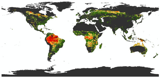 As for the second requirement, there are general macroecological patterns of species richness and distribution, with the highest concentration of terrestrial species at the equator and alternating diversity towards the poles. As a result, biodiversity is not evenly distributed across the globe. In addition, not only is biodiversity unevenly distributed, but it is also faced with uneven risks worldwide. This unequal distribution of species, ecosystems, and threat levels makes it necessary to prioritize and evaluate areas for the conservation of biological diversity [42]. Extensive research has been undertaken by scientists and NGOs to prioritize global areas where the protection of biodiversity is most urgent, see refs. [43,44,45,46,47,48,49,50,51,52]. Ref. [53] reviewed various global biodiversity conservation schemes and found that the following categorization is used in nature conservation science to assess regions for their biodiversity risk: irreplaceability and vulnerability [42,53]. The criteria for irreplaceability are the number of endemic species, taxonomic uniqueness, unusual phenomena, the rarity of important habitat types, and the number of species (richness). The criteria for vulnerability are the level of threat (usually based on the IUCN red list) and the amount of habitat lost. Vulnerability is then labeled as high (for reactive approaches) or low (for proactive conservation) depending on the degree of habitat degradation—while both are esteemed as worth protecting [42,53]. Thus, these requirements deal with the development of a global biodiversity risk map that is able to depict the quality and quantity of biodiversity worldwide.