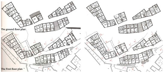 Another modality, the morphology-led planning technique, is more concerned with the complex aggregates and individual constituent materials [5]. Through analyzing morphological features that shape urban sequences, groups of buildings, and portions of urban fabrics, this technique aims to identify morphological units or, more precisely, recognizable parts of urban landscape [5,12]. It also cares about the materials and elements of buildings and open spaces (e.g., fences, windows, doors, plaster coatings, etc.), since they compose the morphological vocabulary and create the image of historic areas [5,12]. The first significant application of this technique was the planning for Assisi during 1955 to 1958, which provided a comprehensive survey and description of morphological and social–economic features of the historic center for the first time, and included the care of common buildings and surrounding urban landscape, not solely monuments [14,70]. Following morphological rules, the plan included some proposals for guiding the re-arrangement of interior spaces and insertion of service units (e.g., stairs and bathrooms) for the purpose of meeting present living needs (Figure 1) [70]. The plan for Urbino’s historic center in the 1960s is widely regarded as a significant milestone for morphology-led planning practices for conserving historic centers in Italy. With the main concern being the homogeneity and similarity of the morphological features of the urban fabric, the plan divided the historic center of Urbino into 26 sectors and seven sub-sectors to establish a regulatory mechanism consisting of targeted intervention rules for each sector and sub-sector [71].