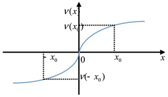Kahneman and Tversky firstly formed prospect theory in 1979. It explains decision making behavior under risk and uncertainty. The absolute number of studies employs the prospect theory to illustrate the two steps of decision making, including the editing step and the evaluation step. In the initial state, editing, the decision-making results are placed in order based on the reference point and utility function, eliminating the problems of bias or personal preference of decision makers. In the evaluation state, the decision makers’ behaviors are in accordance with computed utility value functions. During the evaluation state, behaviors of the decision makers follow computed utility value functions. After the discretion of potential outcomes, a larger utility is selected. Furthermore, Kahneman and Tversky have explicated three value function principles regarding decision maker behaviors—namely loss aversion, reference dependence [43], and diminishing sensitivity—which are usually represented in the form of asymmetric S-shaped value function, as exhibited in Figure 1. The value function [44] can be illustrated as