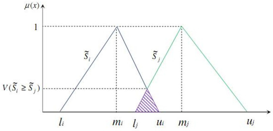 - The fuzzy synthetic extent value in terms of the element (i = 1, 2, …, n), is defined aswhere , and are given by Equation (20).