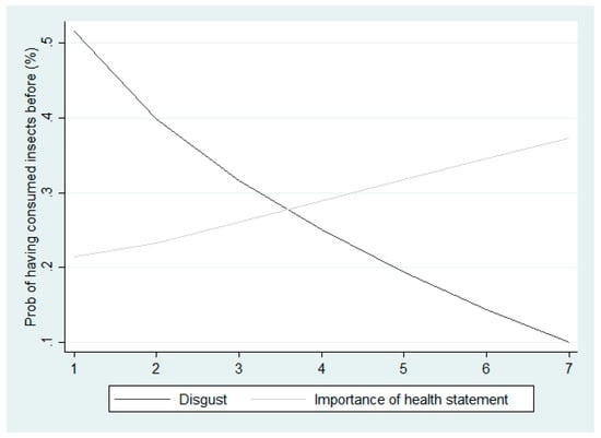 Predicted probability of past insect consumption on disgust and the importance of health statement scores.