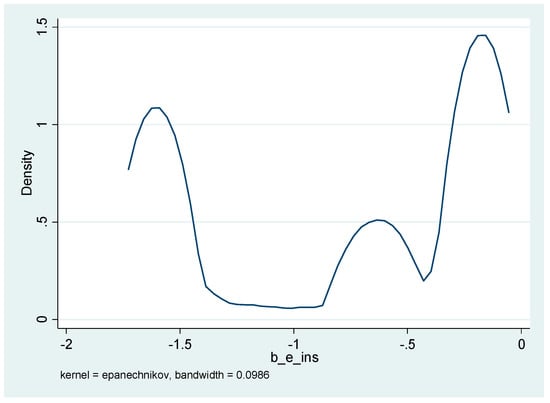 As expected, the insect beef mixed burger patty, instead of the pure beef patty, does not create additional utility to the respondents. Instead, members of class 1 and class 2 show a significant dislike towards the attribute. For respondents of class 3, the parameter estimate is only significant at the 90% level of significance and the point estimate is also substantially below the estimate for class 1 and class 2, which means that they may be willing to purchase the insect based burger patty if the other attributes, for instance, the price, do compensate for the loss in utility. The density distribution of the coefficient estimate for the insect based burger patty is displayed in Figure 5. The attribute organic production method has a significant coefficient estimate only for members of class 2 and class 3, while the magnitude of the coefficient estimate suggests that these respondents are quite keen on choosing organic meat products. For members of both classes, the picture of the healthy burger does not seem to provide additional utility, as indicated by the insignificant coefficient estimates.