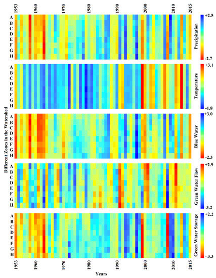 3.2. Spatiotemporal Variability of the Fresh Water Resources