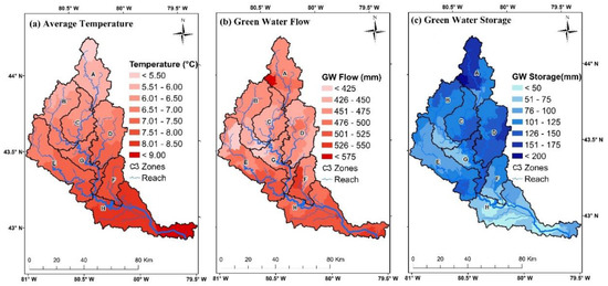 - The green water flow, on the other hand, was found to be associated with temperature, precipitation, and land use/land cover. The higher the temperature and more intense the agriculture was, the higher the green water flow was, as was observed for southern sub-basins of the GRW. Green water storage was found to be associated with various soil properties and was seen to be influenced by elevation or depth of soil. Thereby, a higher green water storage in the northern part of the watershed was observed.