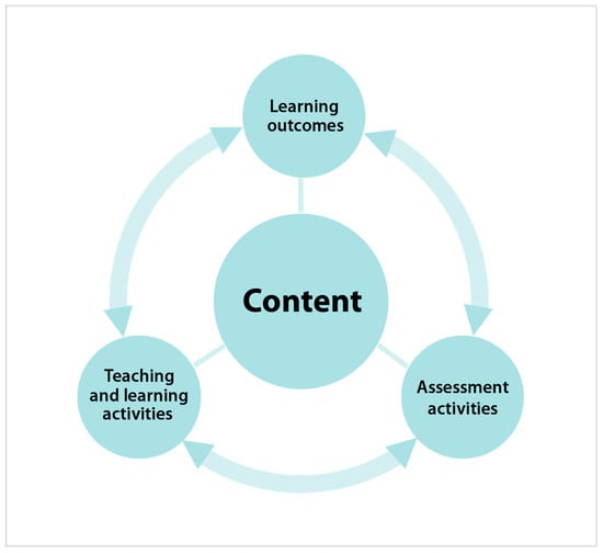 Model for aligning all the elements of teaching, learning, and assessment [71]. Alignment takes places in several stages and leads to constant re-alignment.