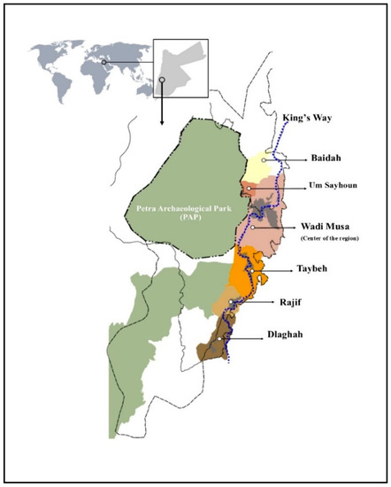 - Farajat, S. The Participation of Local Communities in the Tourism Industry at Petra. In Tourism and Archaeological Heritage Management at Petra; Douglas, C., Comer, D.C., Eds.; Springer: New York, NY, USA, 2012; Volume 1, pp. 145–165. [Google Scholar] [CrossRef]