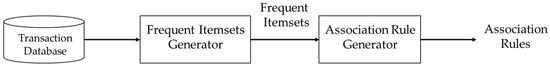 - Agrawal, R.; Imielinski, T.; Swami, A. Mining association rules between sets of items in large databases. Proc. ACM Sigmod 1994, 22, 207–216. [Google Scholar] [CrossRef]