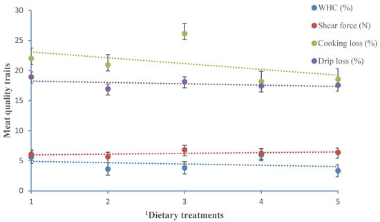 | Meat Quality Traits | 1Dietary Treatments | 2SEM | 3Significance | ||||