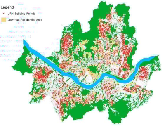 Distribution of the URH permits and the low-rise residential area in Seoul in 2017.