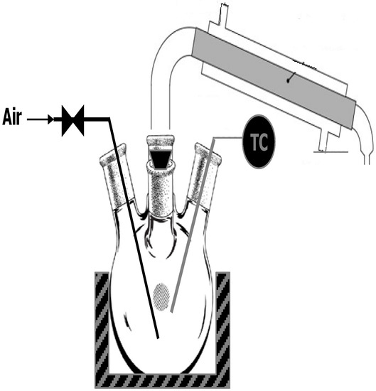 Three hundred milliliters of each biofuel were oxidized in a four-necked flask placed in a heating mantle. Temperature was controlled automatically via a thermocouple immersed in the vessel while air was bubbled via a ground-glass nozzle. Oxidized samples were collected after the end of the experiment for determining TAN and were analyzed according to EN 14104. The peroxide value was determined by simple titration [48].