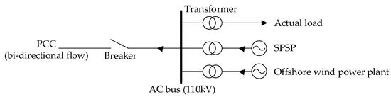 Figure 3 shows the target grid structure for all scenarios in this paper. The actual load of the islanded microgrid, the SPSP, and the offshore wind power plant are all connected to the AC busbar and finally linked to the major-grid through PCC.