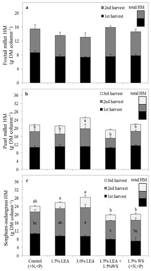 | Treatment | Foxtail Millet | Sorghum-Sudangrass | Pearl Millet |