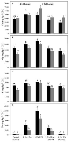 | Treatment | Ca | Mg | S | Na |