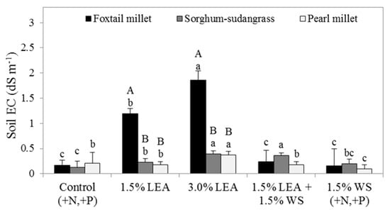 Lewis KL, Foster JL, Hons FM. Lipid-Extracted Algae as a Soil Amendment Can Increase Soil Salinization and Reduce Forage Growth. Sustainability. 2019; 11(7):1946. https://doi.org/10.3390/su11071946