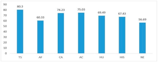 Adequacy index of seven aspects of adequate housing. TS = tenure security; AF = affordability; CA = cultural adequacy; AC = accessibility; HU = housing unit; HIS = housing services and infrastructure; NE = neighborhood environment.