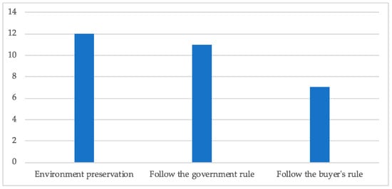 Figure 2 shows the reason for ETP installation. This was a multiple-choice question, but only half the respondents selected the response “environmental preservation”. About 29% of the respondents answered that they installed ETPs to follow a foreign buyer’s requirement. Figure 3 shows the years in which the respondents’ ETPs were installed. As it demonstrates, installation of ETPs has been undertaken at a consistent rate of one or two installations per year. There has not been a spike in installations, even though the companies have been under high pressure from foreign buyers as well as the government.