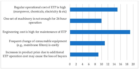 Figure 6. Barriers to or difficulties in effluent treatment plant (ETP) operation (1st—3rd rank).
