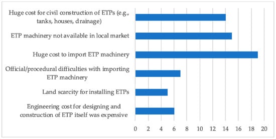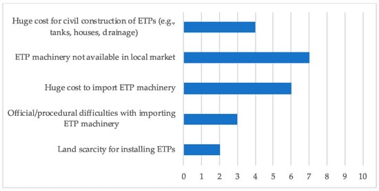 Figure 10. Barriers to or difficulties in effluent treatment plant (ETP) installation (1st rank).