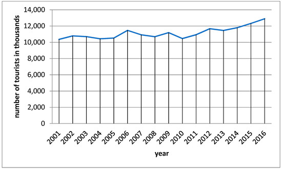 - Szromek, A. Przegląd wskaźników funkcji turystycznej i ich zastosowanie w ocenie rozwoju turystycznego obszaru na przykładzie gmin województwa śląskiego/The review of tourist function indicators and their application in the assessment of area tourism development, the case of Silesia Region municipalities. In Research Journals of the Silesian University of Technology, Series: Organization and Mangement No. 61; Silesian University of Technology Press: Gliwice, Poland, 2012; pp. 295–309. [Google Scholar]