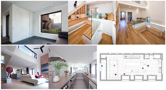 25]. Especially in recent years, as not only high-class houses but also middle-class houses have been able to be designed by architects, the demand for houses designed by architects is vertically expanding. In this situation, detached houses that aim to maximize the individual characteristics of residents dominate housing cases discussed in architectural magazines. Most of the cases referring to the personalities of clients, however, have a tendency towards architectural plasticity, that is, the aesthetic value of the exterior, rather than the reflection of everyday life or lifestyles in them.
