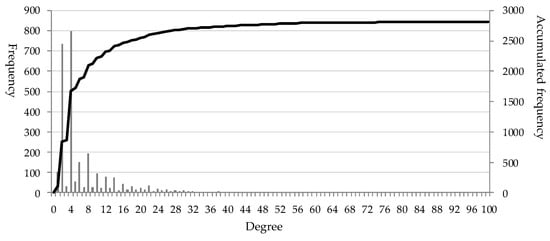 The nature of the network that does not depend on the specific location of the node and the specific form of the edge can be described by the topological property. The corresponding structure is called the topology of the network. Topological parameters, also known as the static geometry of the network, are the basis for studying complex networks [13]. This study focuses on the four most important topological parameters of the network according to complex theory: degree distribution, path length, clustering coefficient, and betweenness. Two software, UCINET [40] and Netdraw [41], are used to obtain the regarding results and visual picture. The former is one of the most popular social network analysis software tools. It includes centrality analysis, cluster analysis, and statistical analysis, etc. Netdraw is generally used for visualization. It is integrated within UCINET software.