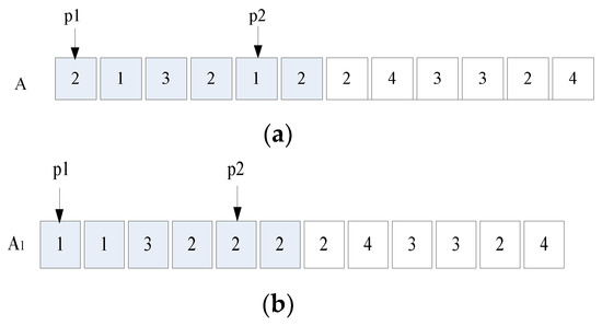 Figure 5. (a). Chromosome A before swap mutation operation. (b) Chromosome A after swap mutation operation. - (2)