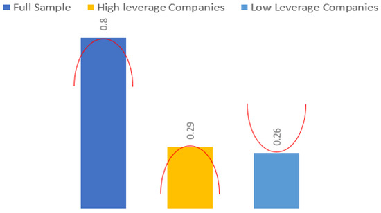 We also evaluated the influence of leverage on the WCF–profitability relationship. The literature defines leverage as the ratio of total debts to total assets [22]. We calculated the median of the leverage variable to divide firms into high- and low-leverage firms. All firms with a leverage value lower than the median were considered low-leverage firms, whereas firms with higher leverage than the median were considered high-leverage firms. To capture the moderating effect of leverage, we propose a leverage dummy variable. It has values of 0 and 1 for low- and high-leverage firms, respectively.