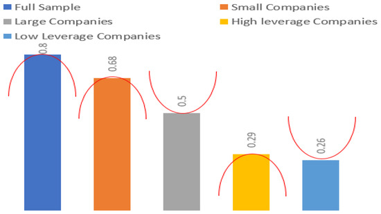 Figure 3 shows that the highest break-even point is for the full sample and the lowest is for low-leverage firms. Small companies have a break-even point of 0.68, which is the highest among all subgroups. The other two subsamples are large firms and high-leverage firms, with break-even points of 0.50 and 0.29, respectively. Small companies and high-leverage companies follow the full sample and show an inverted U-shaped WCF–profitability relationship. However, large companies and low-leverage companies have a U-shaped WCF–profitability relationship.