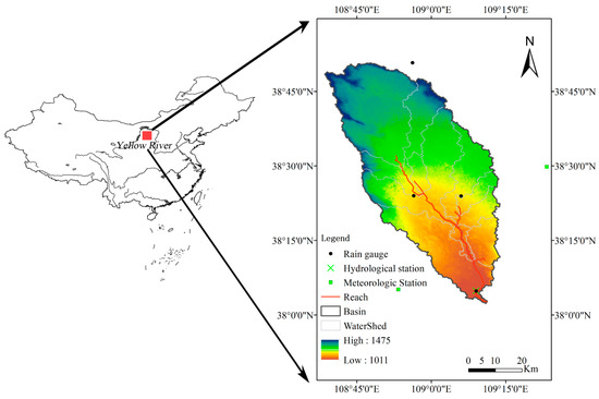 The Hailiutu River catchment (38°02′–38°50′, 108°37′–109°14′), located in the middle section of the Yellow River basin in northwest of China, covers an area of approximately 2500 km2 (Figure 1). This catchment is a typical wind-sandy grass shoal area and a section of Maowusu sandy land. The catchment has a relatively flat topography, with altitude ranging from 1011 m to 1475 m, and the main landform is sand dunes. The catchment belongs to a semi-arid climate, the annual average precipitation is about 380 mm, annual mean temperature is about 8.5 °C, and annual average sunshine time is about 2780 h. The percentage of urban lands in the Hailiutu River basin is small and most are scattered in the basin. The population density of the study area is approximately 30 people/km2. In the study area, farmers practice agriculture substantially, with maize as the primary crop [32,33]. Most agricultural lands are located in the river valley and in the Bulang River sub-catchment. Studies have shown that the underground of the study area is rich in mineral resources such as coal, oil, and natural gas [34,35]. Therefore, in recent years, the government has continuously increased its investment in the construction of base-building in this region for the country’s economic growth. For environmental protection, the government implemented some projects such as ‘Three North Forest Shelterbelts’ and took the policy of ’Closing Sandy land and Forbidding Herding’ to increase shrub and grass land by decreasing bare land in the study area [36]. The Hailiutu River, which is the major river in the catchment, is one of the tributaries of the Wuding River which is a major tributary of the Yellow River. The streamflow of the Hailiutu River is primarily recharged by groundwater [33,34,35,36]. Yang et al. [32] found that the hydrological processes are dominated by the evapotranspiration and direct infiltration of precipitation. Yang et al. [32] also observed with isotopic separation method that up to 96.4% of the total streamflow was composed of baseflow in the Hailiutu River catchment. Zhou et al. [33] observed that only about 5% of the Hailiutu River catchment has a surface slope steeper than 5°and the aquifer could get substantial recharge from precipitation infiltration due to permeable Aeolian sand formation. The flat land surface and low drainage density (0.18 km/km2 from Zhou et al.) assist the Hailiutu River in maintaining a relatively steady discharge even in the dry season (October to May).