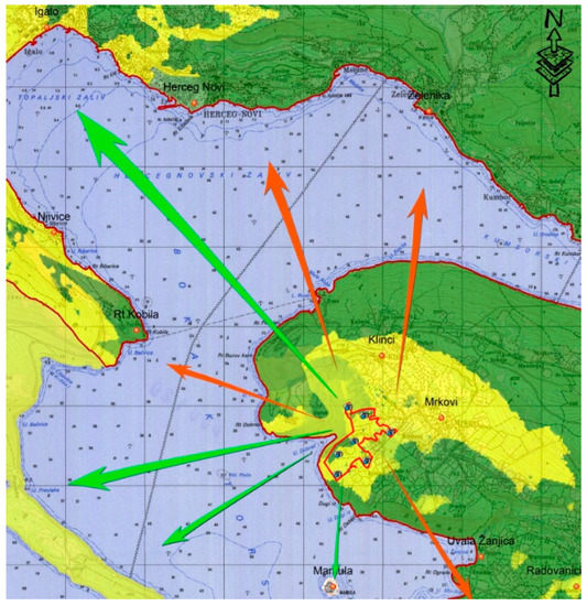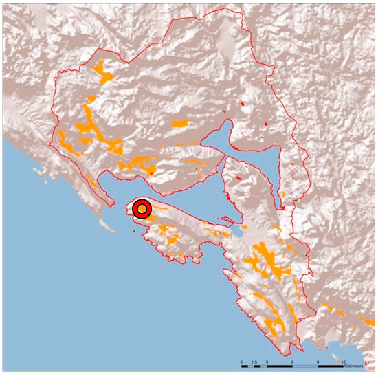 Figure 5) is located in the northwest part of the Luštica Peninsula and covers a part of the steep slope of the peninsula above the Dobreč Bay.