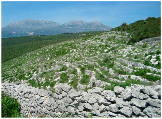 Traditional farming on terraced areas is typical for slightly inclined surfaces. By cascade levelling and building stone retaining walls, soil characteristics were improved, especially soil depth and humidity. These spaces are specific to the formation of olive groves and other terraced crops. Drystone walls are an important landscape element which give it a particular attractiveness and recognizability.
