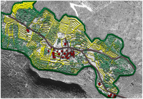 The orthophotographs, as background images, and software package ESRI ArcMap 10.1 (Environmental System research Institute (ESRI), Redlands, CA, USA) were used in determining the boundaries of the rural settlements and in the analysis of the spatial elements.