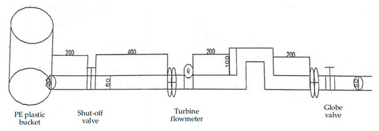 Three mesocosm bioretention units were installed and operated with synthetic runoff for two hours at one-week intervals for five rainfall events (five rainfall recurrence intervals) during the month of May to September, 2016 (at 23~38 °C). According to the runoff pollution load shown in Table 2, the synthetic water was prepared in the laboratory and added to the storage unit (bucket) (Figure 3), and the amount of sample water was the total rainfall under a specific return period. In the experimental process, the water inflow of 5-min intervals is shown in Supplementary Materials (Table S5). The total water inflows under 2-, 5-, 10-, 15-, and 30-year recurrence intervals were 3.22 m3, 4.02 m3, 4.62 m3, 4.97 m3, and 5.58 m3, respectively. The turbine flow meter was used to control the outlet flow and total water output and the valves were adjusted according to the outlet flow rate until the experimental requirements were met. Bioretention units A, B, and C were sequentially conducted to the above experimental steps, while the interval of rainfall was supposed to be one week. The above test steps were repeated with different pollution loads under 2-, 5-, 10-, 15-, and 30-year recurrence intervals.