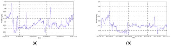 NH3–N variation trend of Guazhou Water Source. (a) NH3–N variation trend in 2016, (b) NH3–N variation trend in 2017.