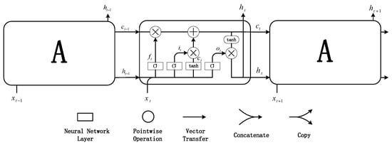 As a special kind of recurrent neural network (RNN), LSTMs have the ability to learn long-term dependencies. All RNNs take the form of chained repeating modules of neural network. LSTMs that use purpose-built memory cells to store information also have this chained in similar structure, but the repeating module is structured differently. As shown in Figure 8, there are four interacting layers in an LSTM cell [24].