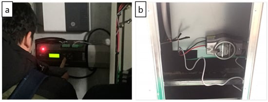 Equipment used for the energy-consumption measurement (a) PDI installed in an EPS room; (b) watt-hour meter.