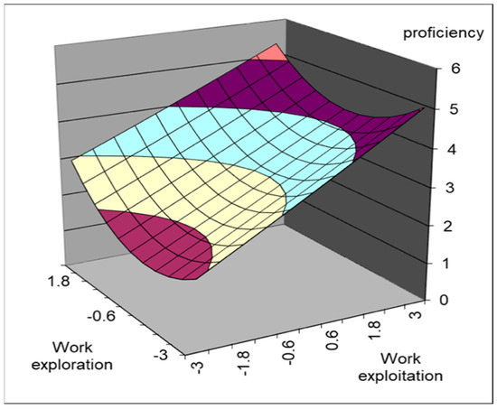 In work ambidexterity, proficiency will increase along converging incongruence where exploitation is greater than exploration in the incongruence line of exploration = −exploitation.