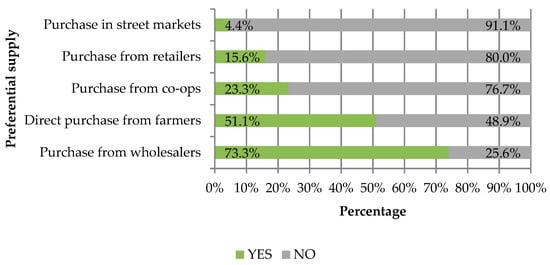 A high percentage of retailers purchase directly from farmers (51.1%), which in the case of the small towns is greater (71.0%); this figure decreases for the medium-sized towns (31.0%).