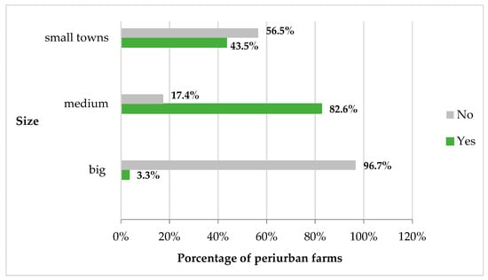 The descriptive analysis provided in the study cases includes the frequencies of the variables studied by means of the questionnaire extended to primary periurban producers and retailers. As the analysis is of an exploratory nature, we employed a descriptive methodology with the aim of studying the distribution of frequencies (the number of percentage of cases studied) for each of the questions included in the different questionnaires. Thus, we provide information on the concrete values that the selected variables have adopted in relation to the number and percentage of times that each of these values is repeated. Likewise, to analyse possible patterns of association between the variables, we completed the descriptive analysis with the analysis of categorical variables using the contingency tables and we performed an analysis of the categorical variable “city size” to observe its relationship with the remaining variables. Incorporating categorical variables enables us to define the possible patterns of association that can be established. Hence, the contingency tables were two-dimensional, based upon two criteria: city size and variable X measured in each question.