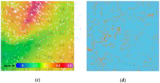 (a) A visual representation of wind field, (b) a representation of sea temperature, (c) a representation of wave field, (d) and a representation of flow field.