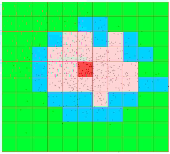 As a result of this situation, the first thing to do is register a regular quadrilateral within the containment area or circumscribe this quadrilateral around the containment area. In order to maximize the results of detection probability and success probability, it is advisable to circumscribe the quadrilateral by surrounding the first cells closest to the containment area.