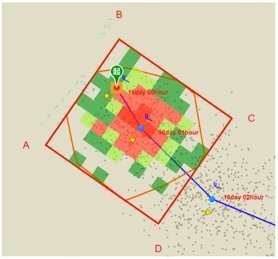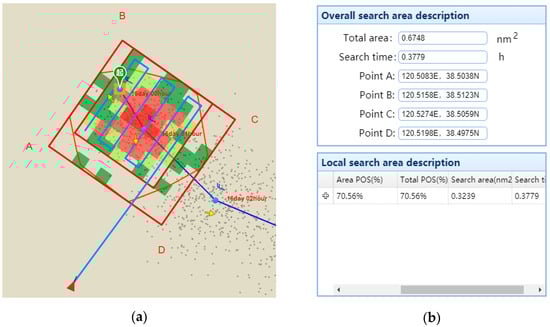 As can be seen from the above table, the probability of successfully finding a search and rescue target in the selected area is 0.7056. The specific search plan and search area parameters are as shown in Figure 11: